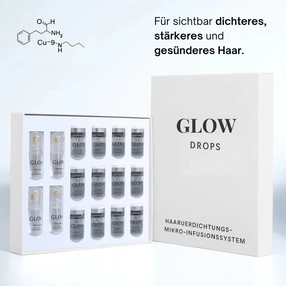 Glow Drops bringen Wirkstoffe dorthin, wo sie gebraucht werden – nicht auf die Oberfläche, sondern zu den Wurzeln. Ohne Klinik. Ohne Wartezeit. In 5 Minuten zu Hause.
